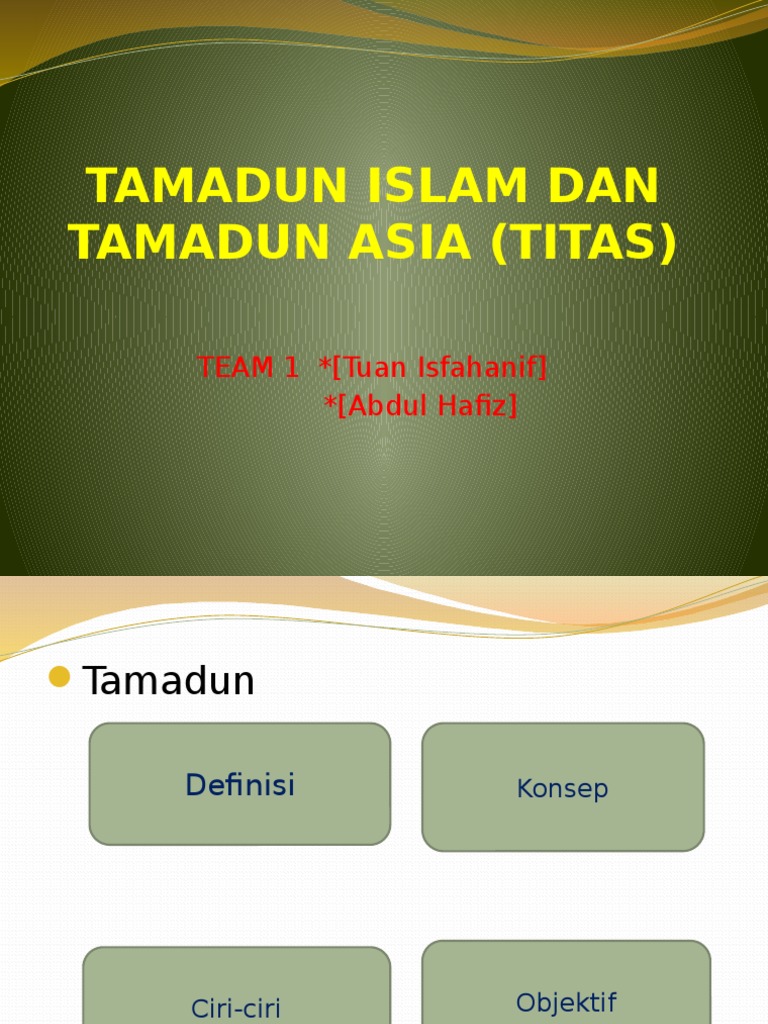 Start by marking tamadun islam dan tamadun asia as want to read buku ini merupakan himpunan hasil penulisan bersama para pensyarah fakulti tamadun islam, universiti teknologi malaysia yang terlibat secara langsung dalam proses pengajaran dan pembelajaran titas. Usaha manusia untuk menyesuaikan kehidupan mereka dengan alam sekeliling telah menjadikan manusia lebih kreatif dan inovatif. Tamadun islam] yang ditawarkan di ipt. Glossary entry (derived from question below). Video pembelajaran untuk kursus tamadun islam dan tamadun asia (titas) topik 2: