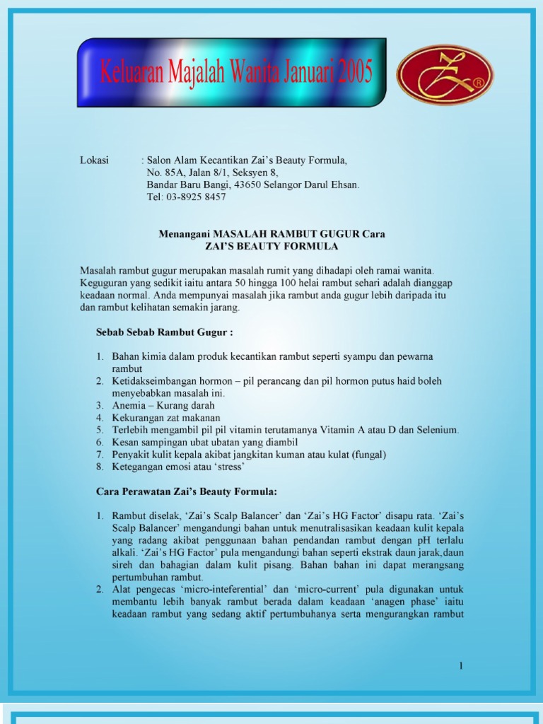 Syampu rambut terutama yang banyak bahan kimia tidak elok dan akan keringkan rambut dan kulit kepala. kerjaya banyak guna otak buat rambut cepat gugur kerjaya saya buatkan saya banyak berfikir dan mengkaji sesuatu bahan. Apa punca sebenar rambut gugur ni? Berikut merupakan 3 sebab rambut menjadi gugur yang harus anda ambil tahu. Rambut gugur ni sebab kulit kepala kering.